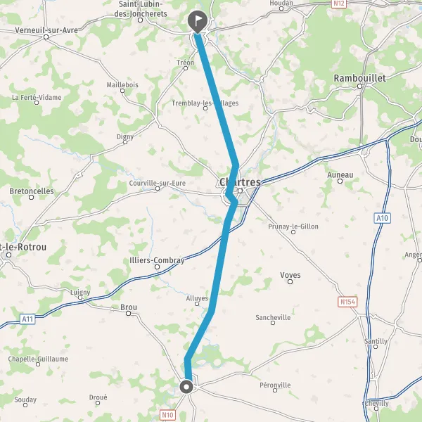 Au rond-point, prendre la 1ère sortie sur D954 (Route de Chartres) et continuer sur 1,6 kilomètre