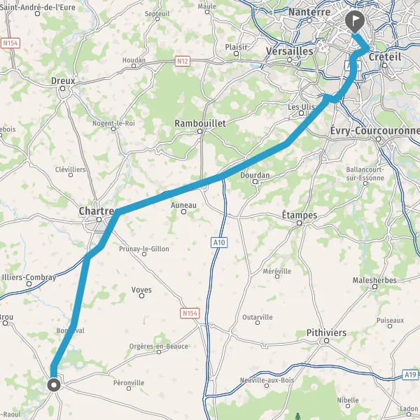 Trajet de Châteaudun (28200) à Paris (75000) en voiture