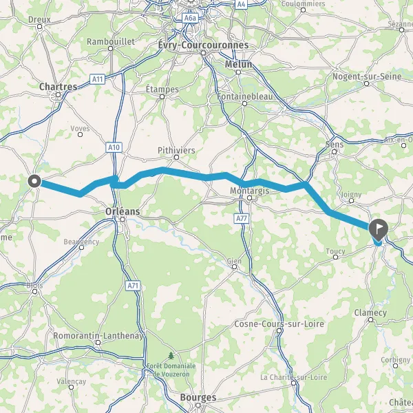 Prendre à droite et rejoindre A19 E60. Continuer sur 99 kilomètres
