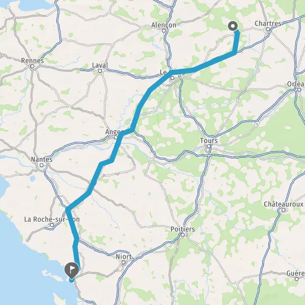 Prendre à gauche et rejoindre A83 E3. Continuer sur 33 kilomètres