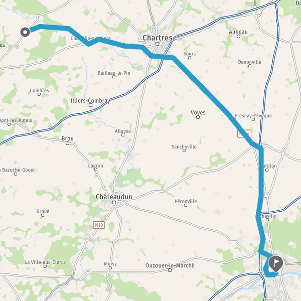 Prendre à droite et rejoindre D29 (Rue de Voves). Continuer sur 500 mètres