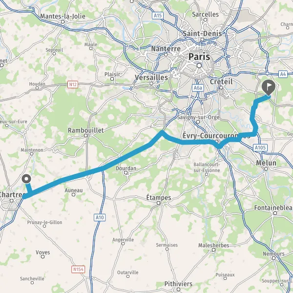 Prendre à droite et rejoindre N104 (La Francilienne). Continuer sur 22 kilomètres