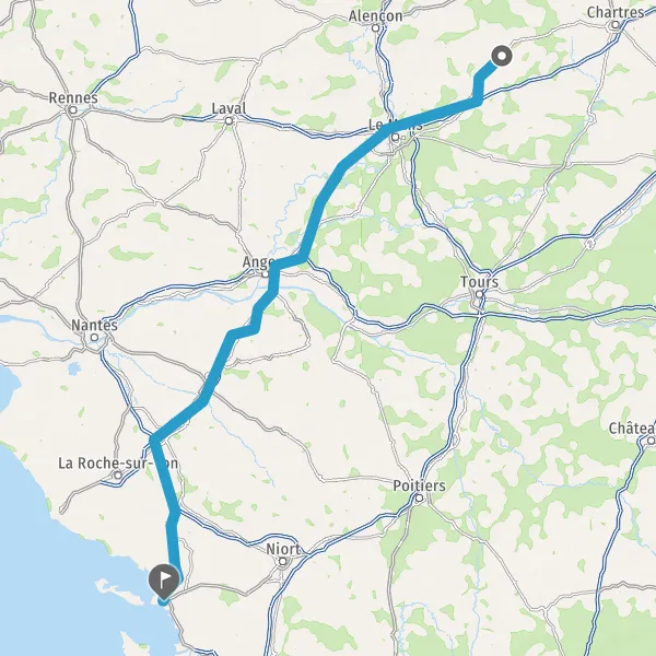 Prendre à gauche et rejoindre A83 E3. Continuer sur 33 kilomètres