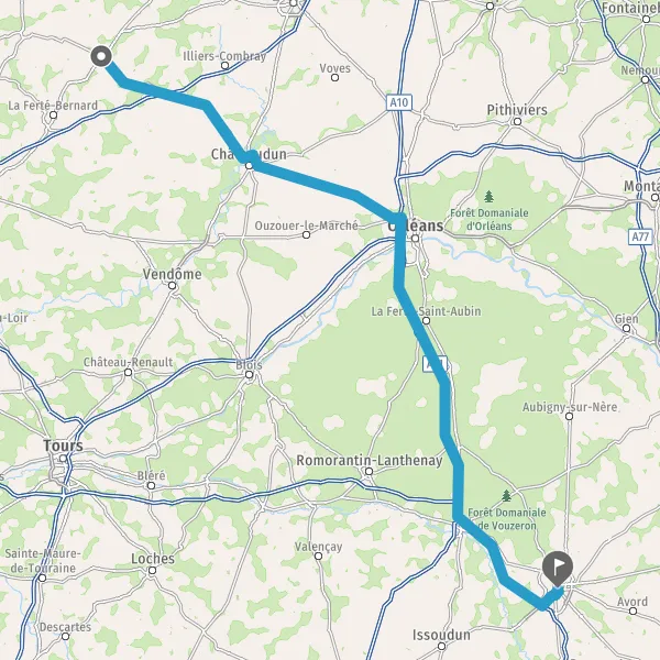 Tourner légèrement à droite sur D955 (Route d'Orléans) et continuer sur 12 kilomètres