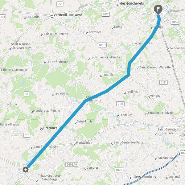 Tourner à droite sur D928 (Route de Dreux) et continuer sur 14 kilomètres