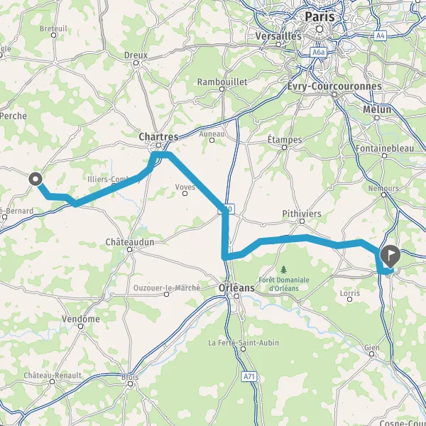 Tourner légèrement à droite sur D955 (Route d'Orléans) et continuer sur 12 kilomètres