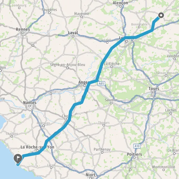Prendre à droite et rejoindre A11 E50. Continuer sur 44 kilomètres