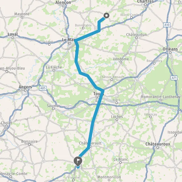 Prendre à droite et rejoindre A11 E50. Continuer sur 31 kilomètres