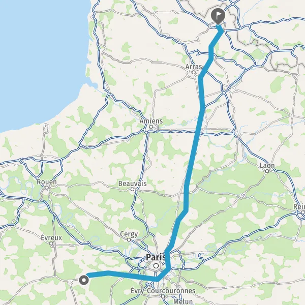 Continuer E19 (Autoroute du Nord) sur 124 kilomètres