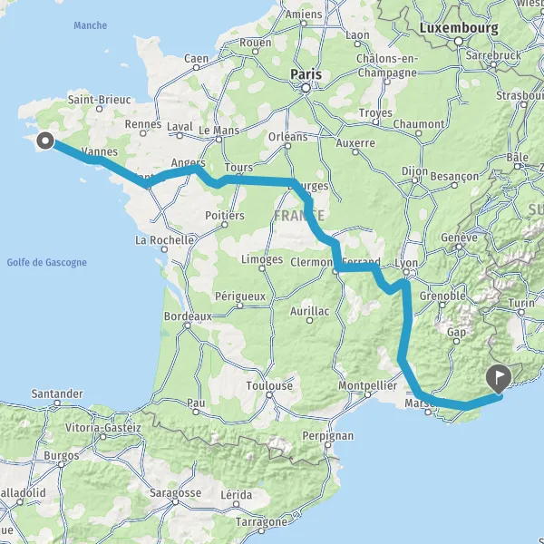 Prendre à droite et rejoindre A83. Continuer sur 150 kilomètres