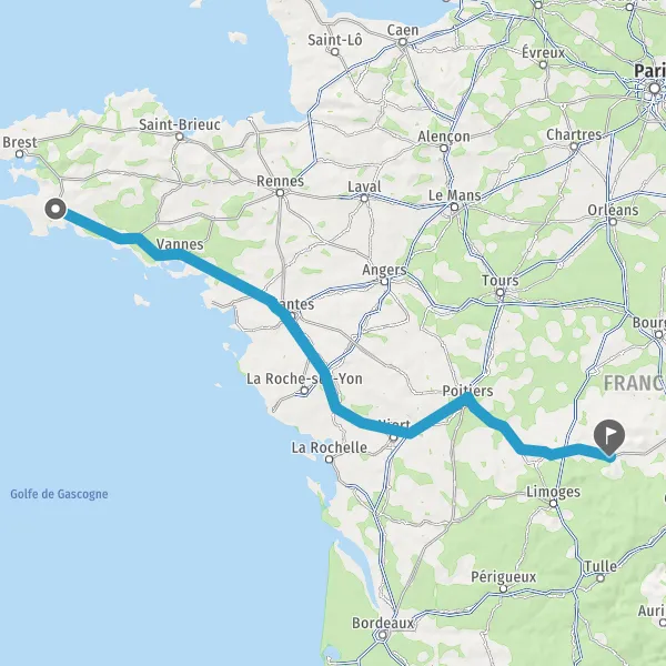 Prendre à droite et rejoindre A83. Continuer sur 150 kilomètres