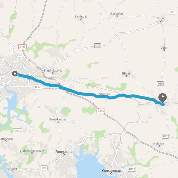Au rond-point, prendre la 2ème sortie sur D765 (Route de Rosporden) et continuer sur 4,6 kilomètres