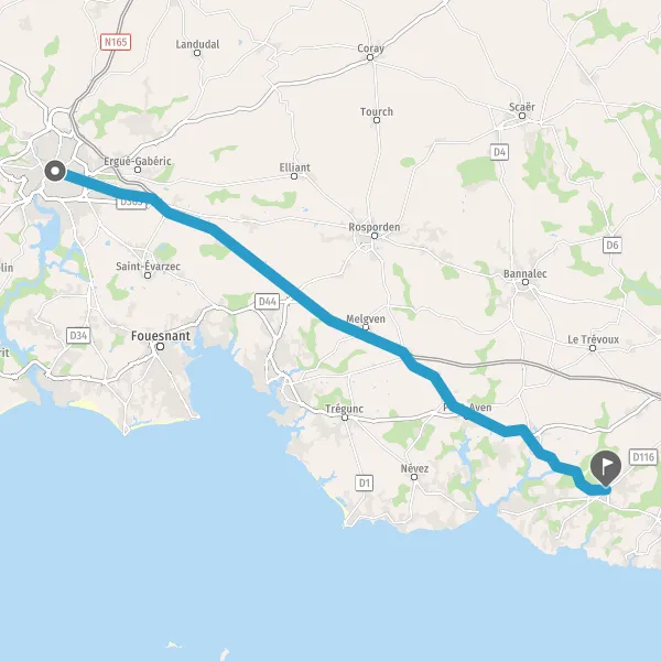 Au rond-point, prendre la 2ème sortie sur Vieille Route de Rosporden et continuer sur 600 mètres