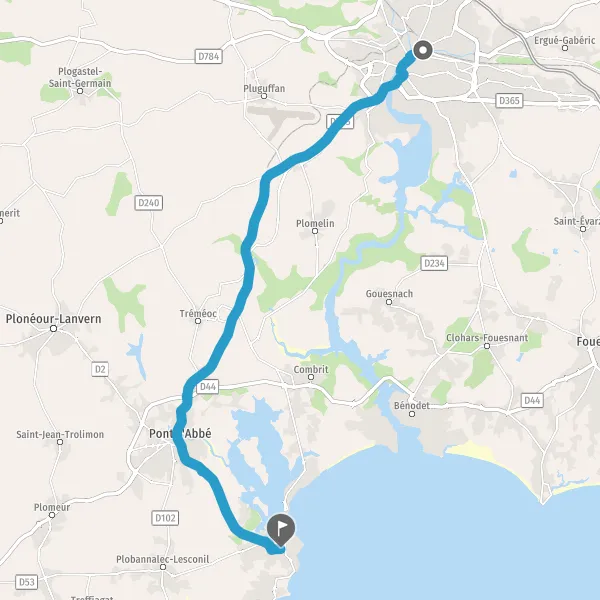 Tourner légèrement à droite sur D2 (Route de Loctudy) et continuer sur 2,3 kilomètres