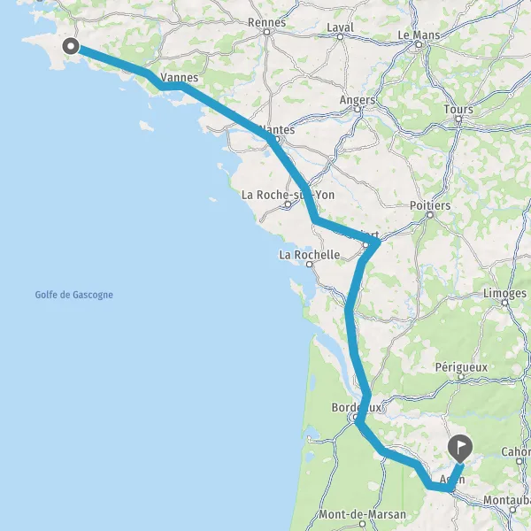 Prendre à droite et rejoindre A83. Continuer sur 150 kilomètres