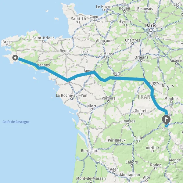 Prendre à droite et rejoindre A85. Continuer sur 205 kilomètres