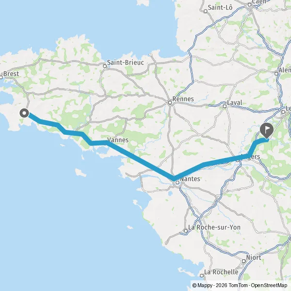 Tourner légèrement à droite sur Rue de Brest et continuer sur 240 mètres