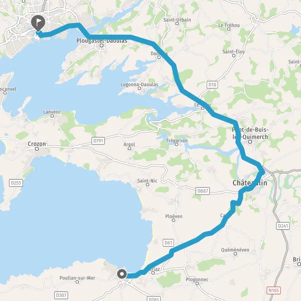 Au rond-point, prendre la 2ème sortie sur D7 (Rue Poul ar Saf) et continuer sur 850 mètres