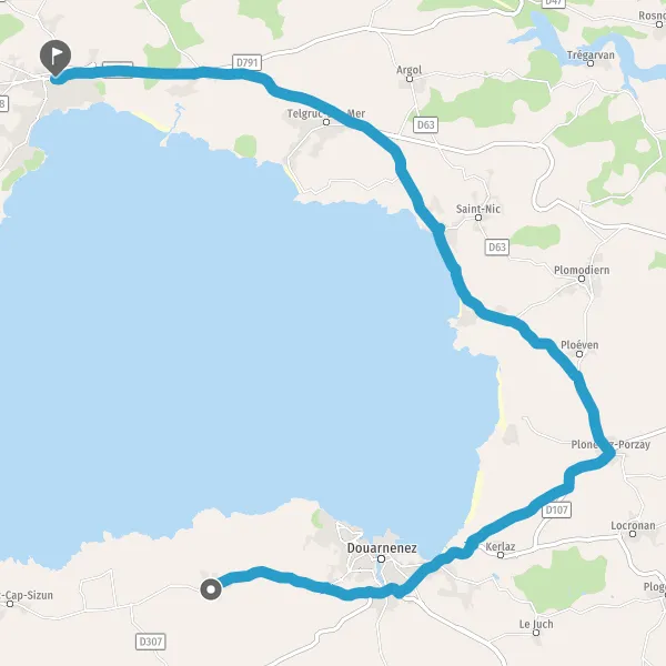 Au rond-point, prendre la 3ème sortie sur D887 (Route de Crozon) et continuer sur 2,1 kilomètres