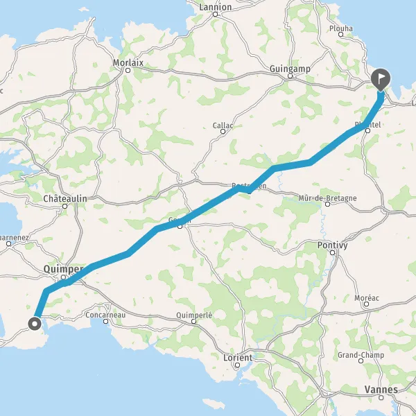 Au rond-point, prendre la 2ème sortie sur D15 (Avenue de Pen Carn Lestonan) et continuer sur 15 kilomètres