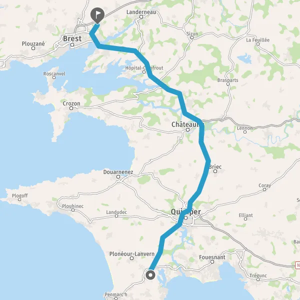 Prendre à droite et rejoindre D765 (Route de Douarnenez). Continuer sur 650 mètres