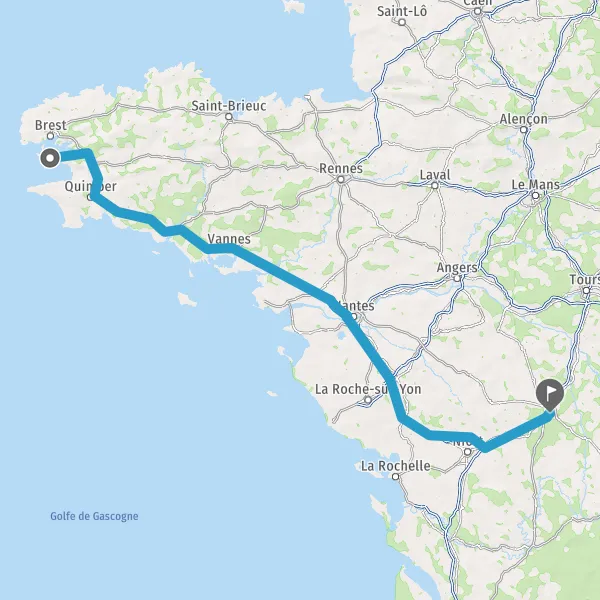 Prendre à droite et rejoindre A83. Continuer sur 150 kilomètres