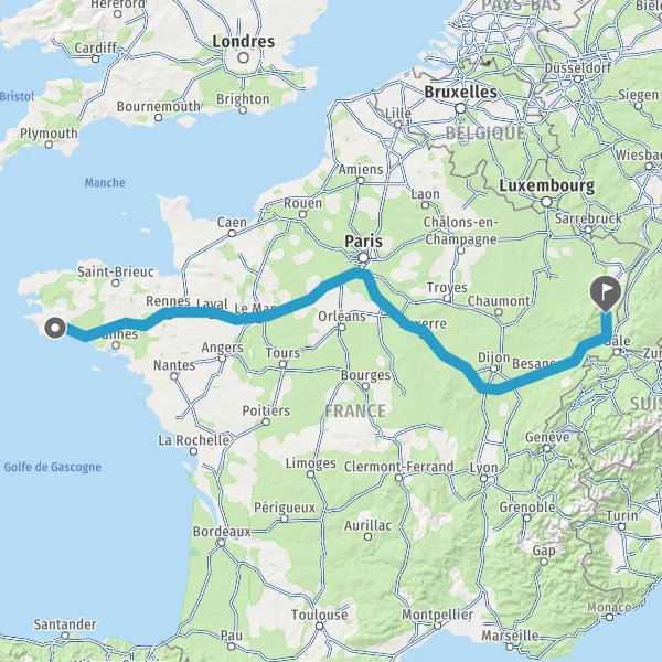Prendre à droite et rejoindre A36 E60. Continuer sur 55 kilomètres