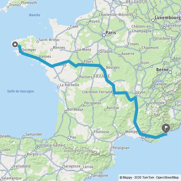Au rond-point, prendre la 2ème sortie sur D165 (Route du Vieux Saint-Marc) et continuer sur 285 kilomètres