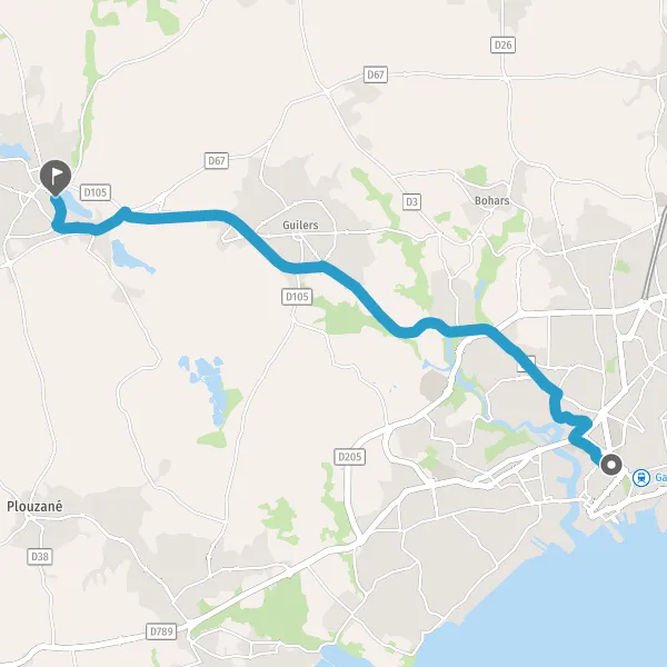 Au rond-point, prendre la 3ème sortie sur D67 (Route de Gouesnou) et continuer sur 650 mètres