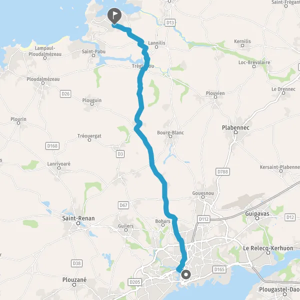 Tourner légèrement à gauche sur D3 (Rue de l'Aber Benoît) et continuer sur 5 kilomètres