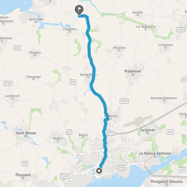 Au rond-point, prendre la 1ère sortie sur D67 (Route de Saint-Renan) et continuer sur 300 mètres