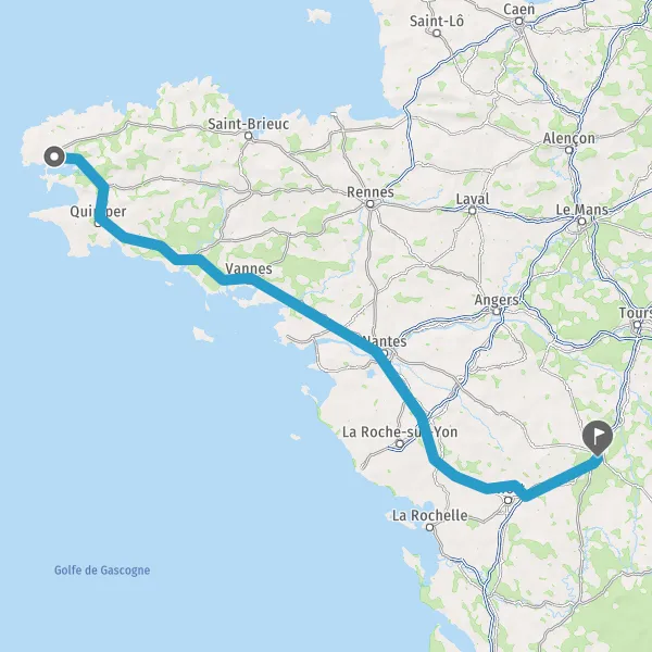 Prendre à droite et rejoindre A83. Continuer sur 150 kilomètres