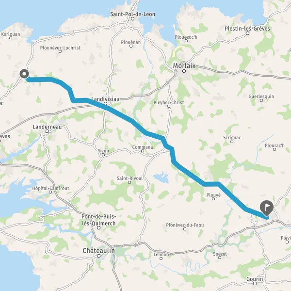 Au rond-point, prendre la 3ème sortie sur D32 (Croas ar Rod) et continuer sur 18 kilomètres