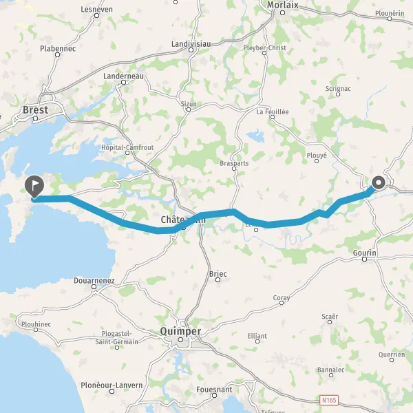 Prendre à droite et rejoindre N164 (Route de Carhaix). Continuer sur 36 kilomètres