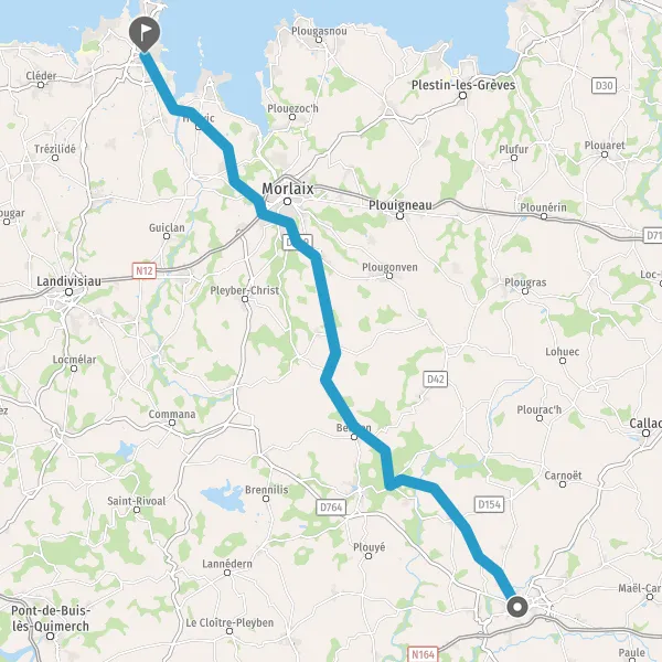 Au rond-point, prendre la 3ème sortie sur D58 (Route de Roscoff) et continuer sur 4,4 kilomètres