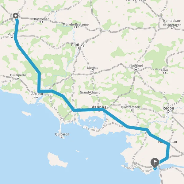 Tourner légèrement à droite sur Port de Carhaix et continuer sur 26 kilomètres