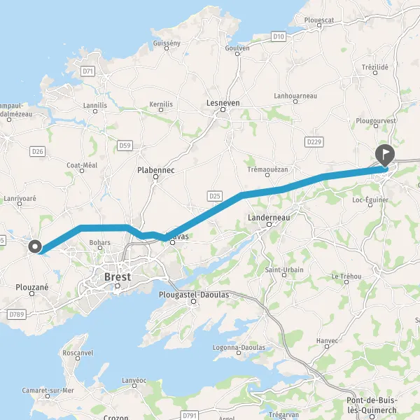 Au rond-point, prendre la 2ème sortie sur D67 (Route de Gouesnou) et continuer sur 2,8 kilomètres