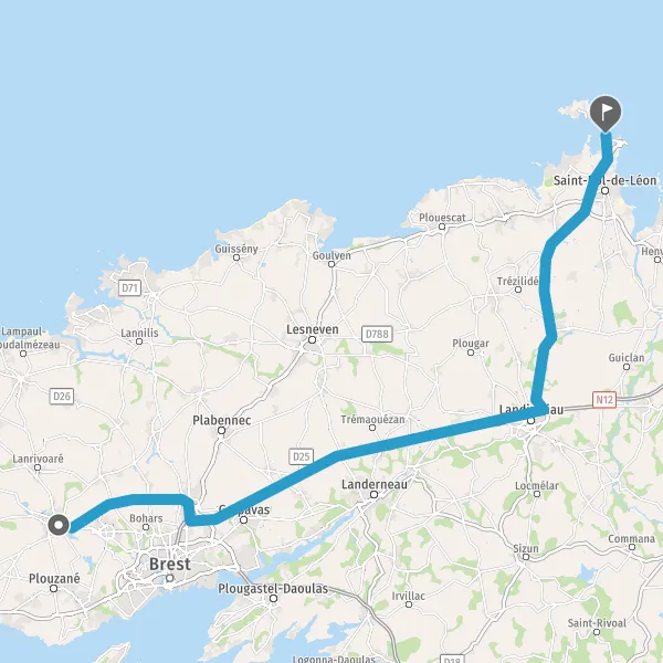 Au rond-point, prendre la 3ème sortie sur D67 (Route de Gouesnou) et continuer sur 2,8 kilomètres