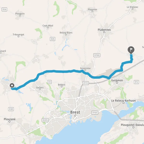 Au rond-point, prendre la 2ème sortie sur D67 (Route de Gouesnou) et continuer sur 2,8 kilomètres