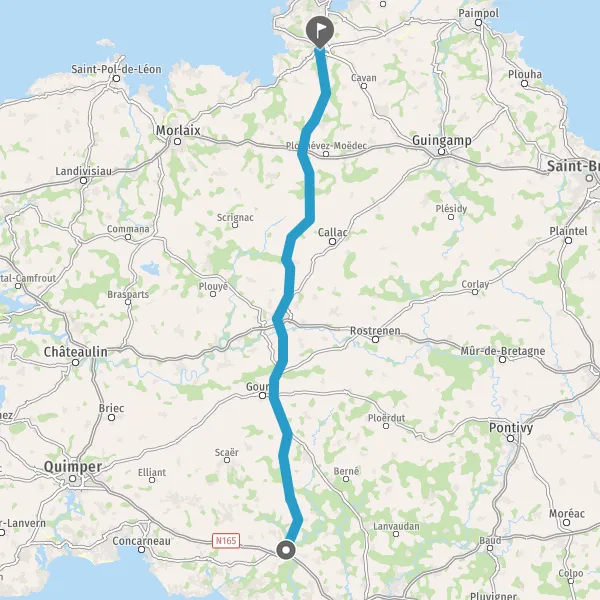 Tourner légèrement à gauche sur Rue de Callac et continuer sur 1 kilomètre