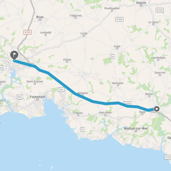 Prendre à droite et rejoindre D765 (Route de Rosporden). Continuer sur 200 mètres