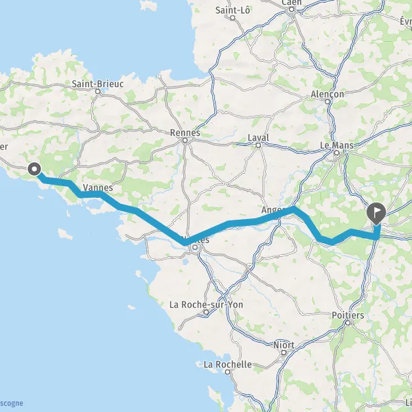 Prendre à droite et rejoindre N165 E60 (N165). Continuer sur 152 kilomètres