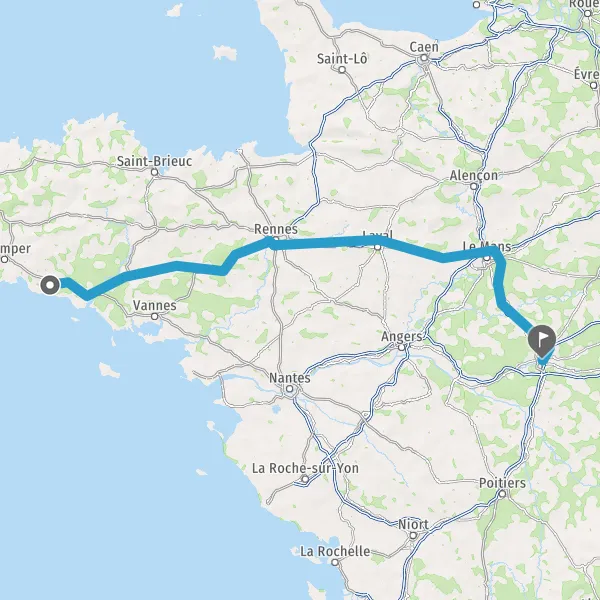 Prendre à droite et rejoindre N165 E60 (N165). Continuer sur 154 kilomètres