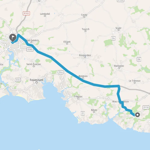 Prendre à droite et rejoindre D765 (Route de Rosporden). Continuer sur 200 mètres