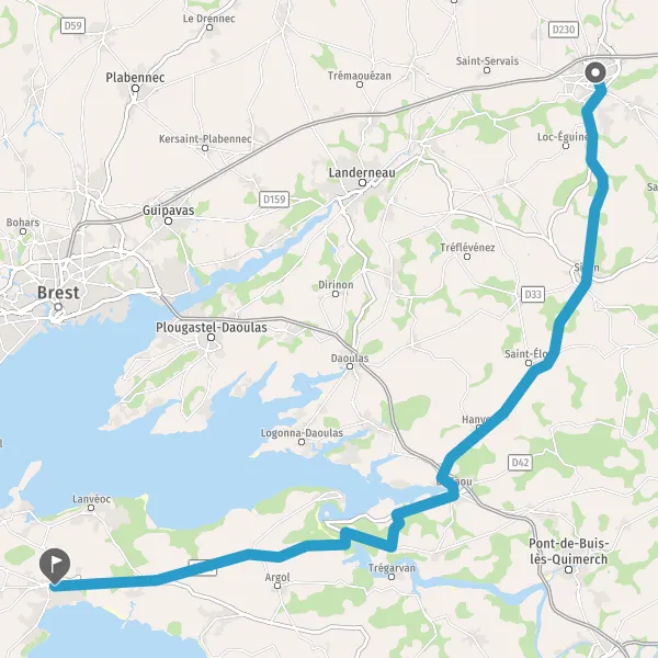 Au rond-point, prendre la 2ème sortie sur D887 (Route de Crozon) et continuer sur 2,1 kilomètres