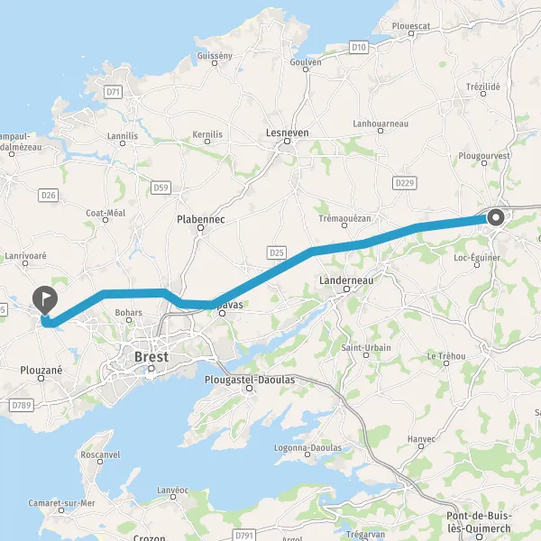 Au rond-point, prendre la 1ère sortie sur D67 (Route de Gouesnou) et continuer sur 2,8 kilomètres