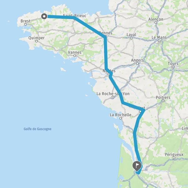 Prendre à droite et rejoindre A83. Continuer sur 150 kilomètres