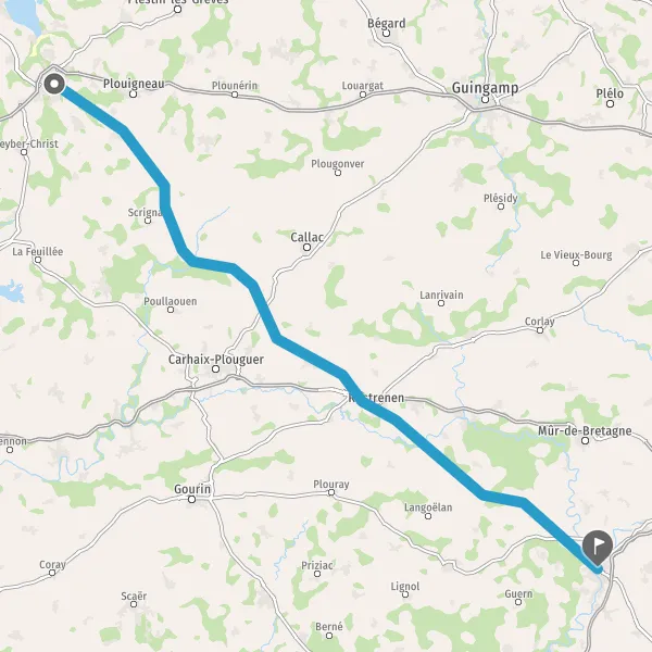 Au rond-point, prendre la 2ème sortie sur D9 (Route de Callac) et continuer sur 9,9 kilomètres