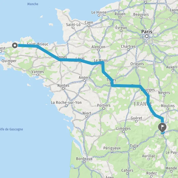 Prendre à droite et rejoindre A85 E604. Continuer sur 106 kilomètres