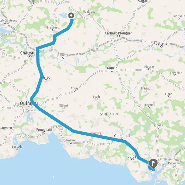 Au rond-point, prendre la 2ème sortie sur D769 (Ty Néhué Kerraoul) et continuer sur 13 kilomètres